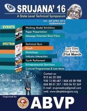 Srujana' 15 is a state level Technical Symposium organised by Telangana Unit of ABVP. Find the registration form and rule book below.